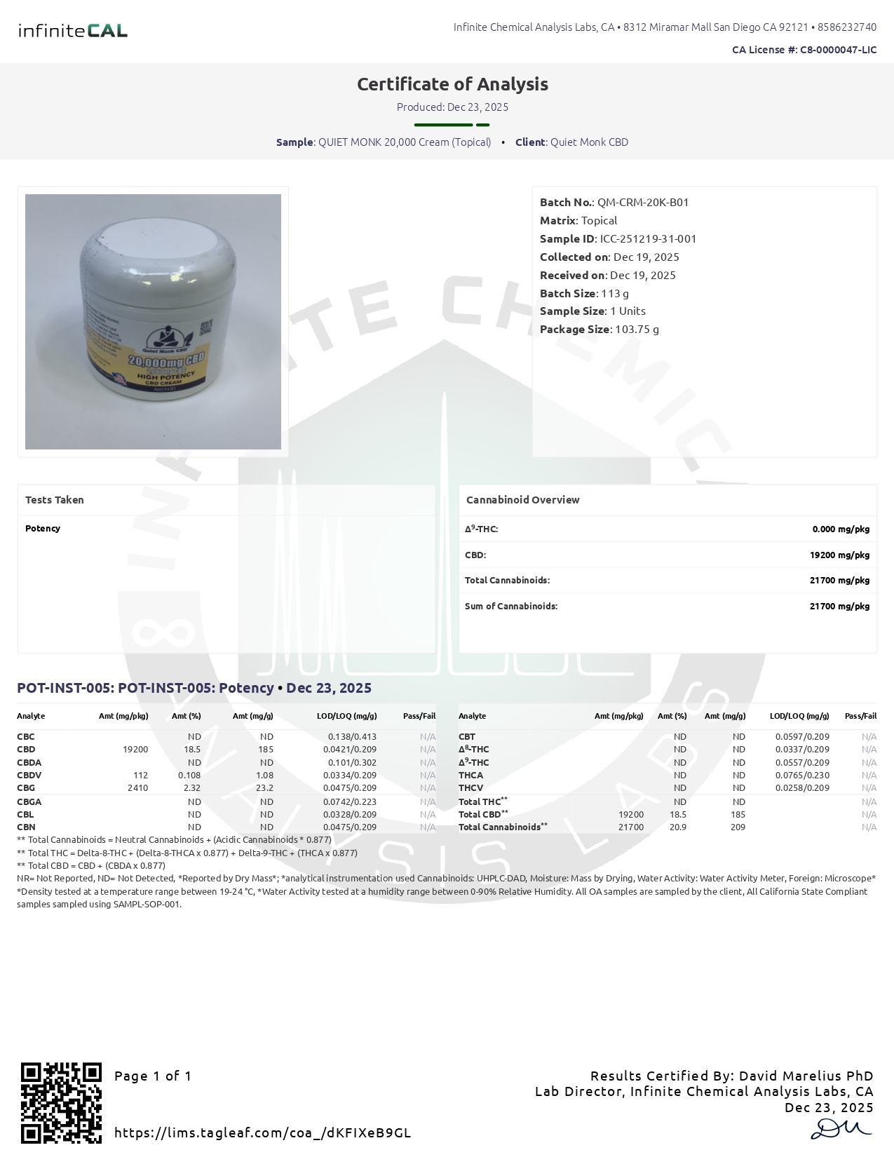 By increasing the CBG content in our20,000mg CBD cream, we’re enhancing its pain-relief potential. CBG is known for its powerful anti-inflammatory and soothing properties, making it an ideal addition to support CBD in managing pain and discomfort. This improved formula provides more effective relief for issues like arthritis, muscle soreness, and inflammation. That’s why we’ve enriched our cream with more CBG—2,000 more milligrams to give you better, natural support.